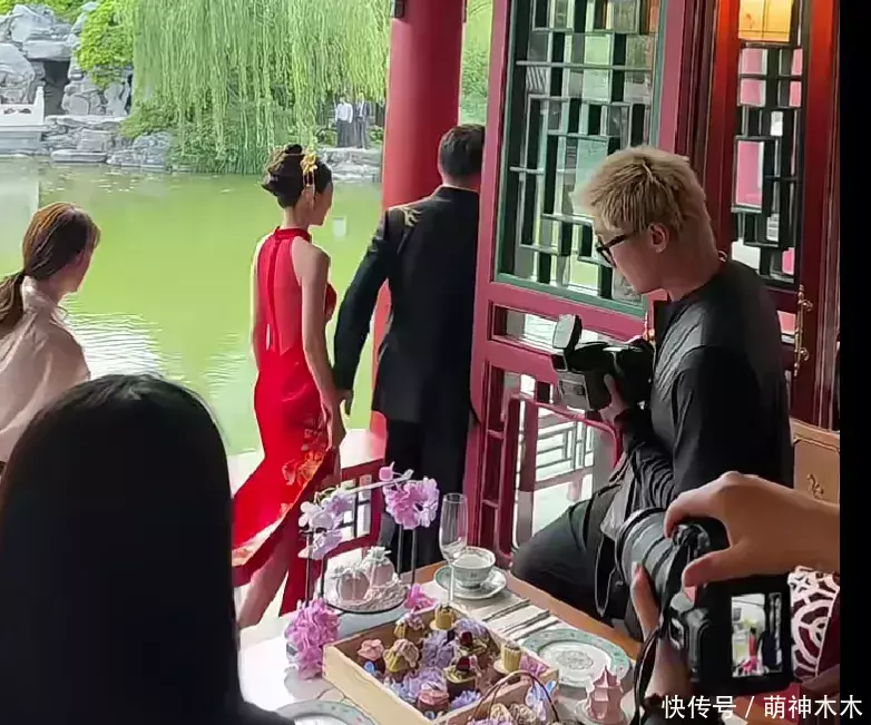 等到婚礼现场的时候,马筱梅又换了一套无袖的中式礼服,汪小菲似乎领着她认识客人敬酒。本身酒店装修就古色古香,配上中式婚礼,仪式感拉满了。
